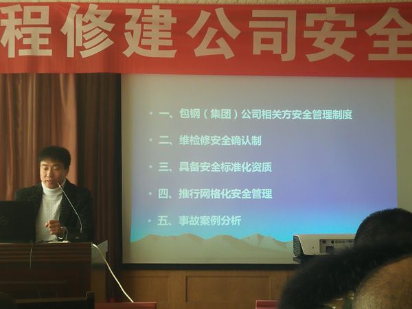 于2019年1月9上午8點,集團公司聯合工程修建公司進行為期一天的安全培訓,特邀請包鋼集團公司生產部張鋼和康寶慶(注冊安全工程師 二級安全評價師)為各單位安全員進行安全培訓。